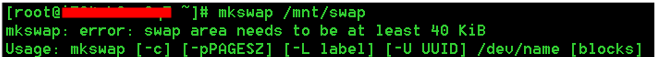 1 | mkswap: error: swap area needs to be at least 40 KiB |